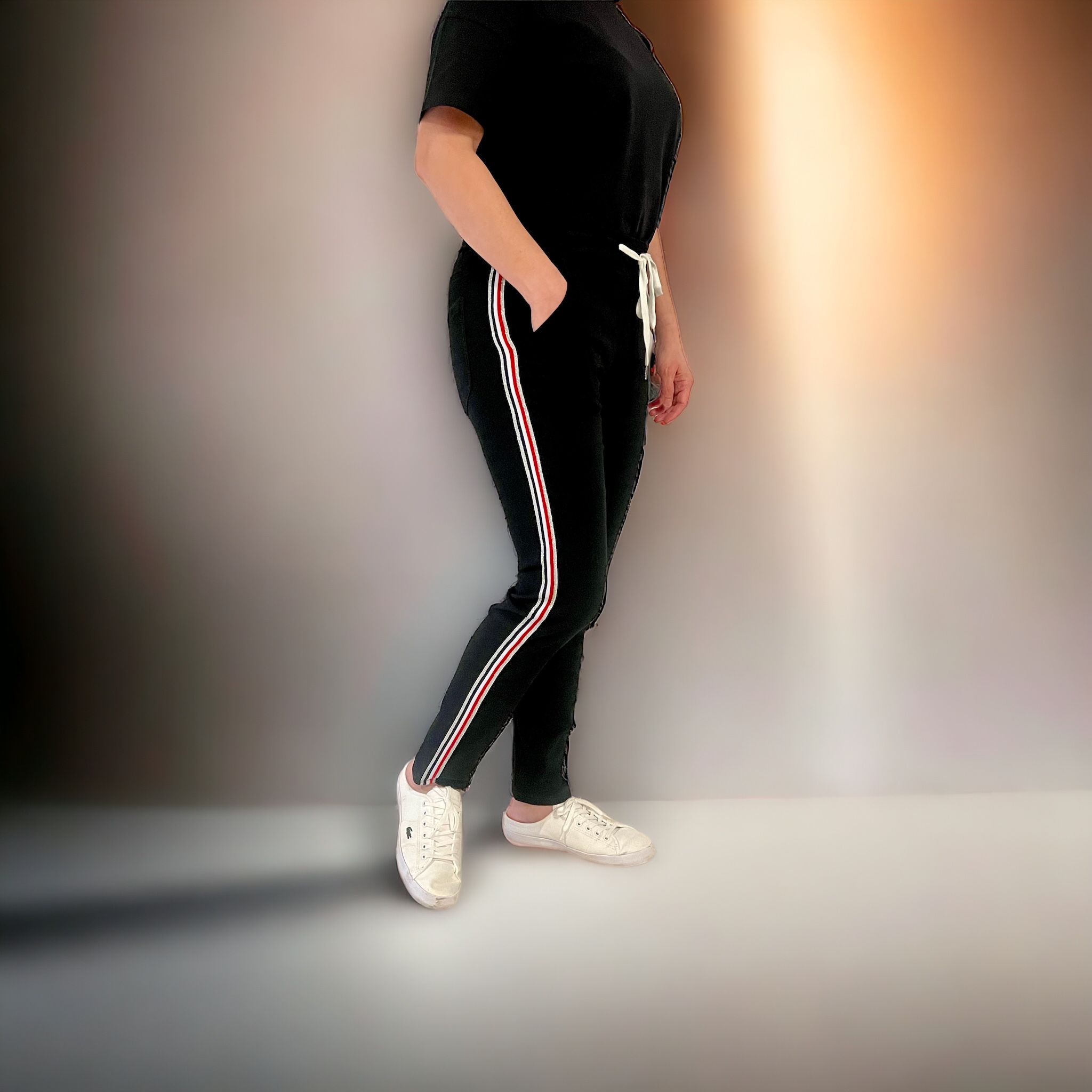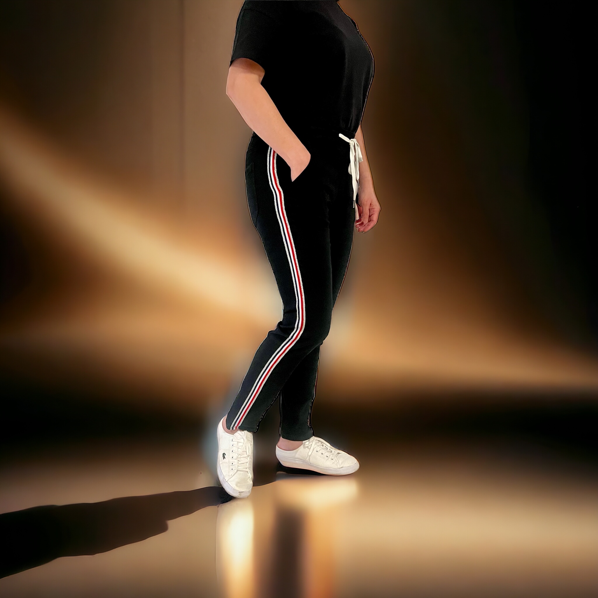 Jogger Pants in Black with side stripes